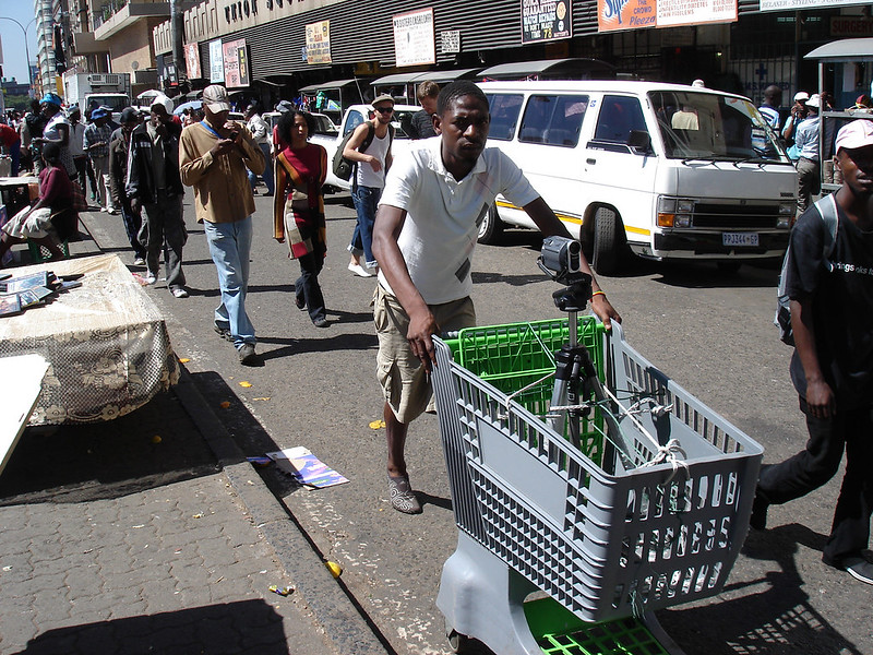 Trolley pushing activity in the city of Johannesburg provides a necessary service for people wanting to transport heavy baggage through the city. most trolley pushers charge a fee of R20 for a single load, but are seldom paid more than R5 by streetwise customers who know that trolley pushers are in no position to bargain. The problem with the activity has been the illegal nature of the trolleys used, as they are stolen from supermarket chain stores. however, the trolley pushers are not responsible for the theft of trolleys. harassment by the police is also a problem. every time a raid occurs, trolley pushers are fined R300 and trolleys are confiscated. lately, raids have been occurring on fridays, with trolley pushers being arrested over the weekend.